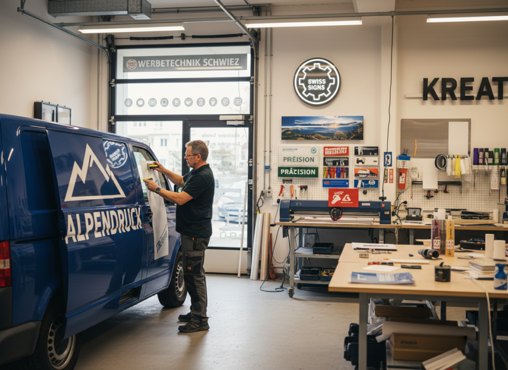 Werbetechnik macht deine Marke sichtbar: auf Fahrzeugen, an Fassaden, in Schaufenstern und auf Messen. Wir setzen deine Ideen in hochwertige Beschriftungen, Folierungen und Beschilderungen um – langlebig, präzise und passend zu deinem Markenauftritt.